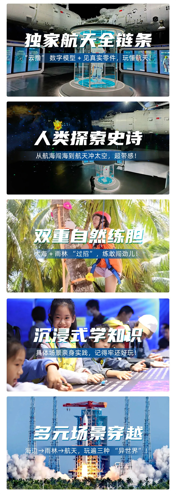行程设计独具匠心,形成一条清晰的“探索逻辑线”:学习航海工具(船模)→锤炼探索者品格(生存/雨林)→见证终极探索成就(航天)。