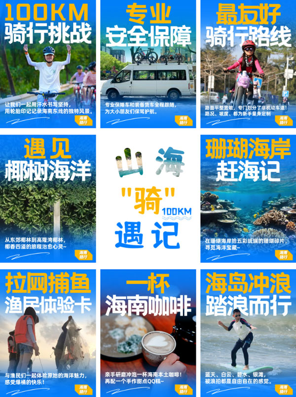 "踏上车轮,启程海南东线——100km的骑行之旅,每一公里都是新风景,每一刻都是新自我,这是一场关于治愈、美景和自我超越的旅程,让我们一起骑行,解锁海南东线的美丽与激情!"