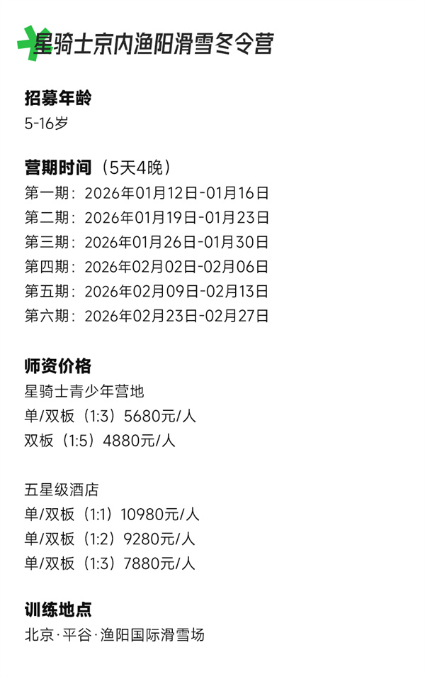 25-26新雪季如约而至!星骑士渔阳滑雪冬令营,带着惬意便捷的滑雪体验,再次与孩子们快乐相遇啦!