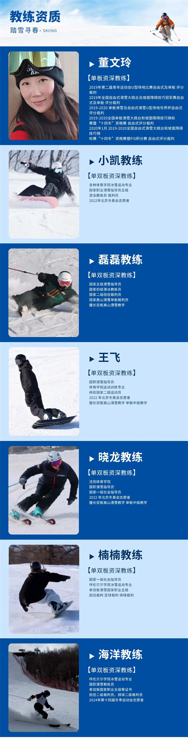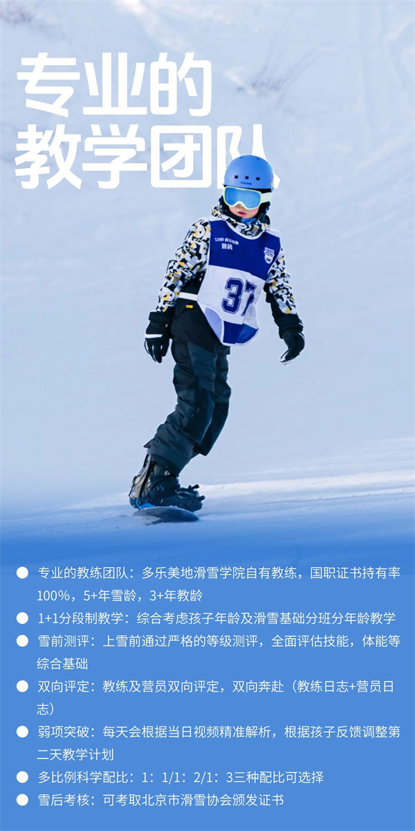 启动滑雪学院原班师资团队,【踏雪寻春】滑雪学院教练多年从事儿童滑雪教学,对6-14岁儿童有丰富的滑雪教学经验。