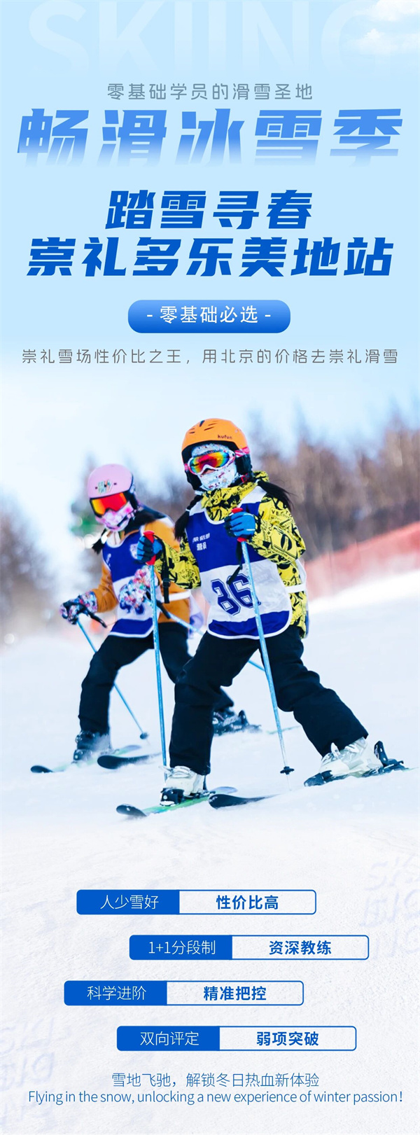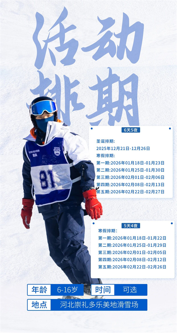 【踏雪寻春】滑雪学院独立打造的科学滑雪体系,2026全面升级,根据孩子实际水平分层教学。