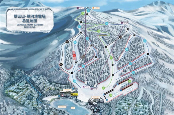 翠云山银河滑雪场依山自然走势而建,全天阳光普照,日照时间相比其他雪场多2-4小时,光线视野极佳,对于初学者来说更安全。